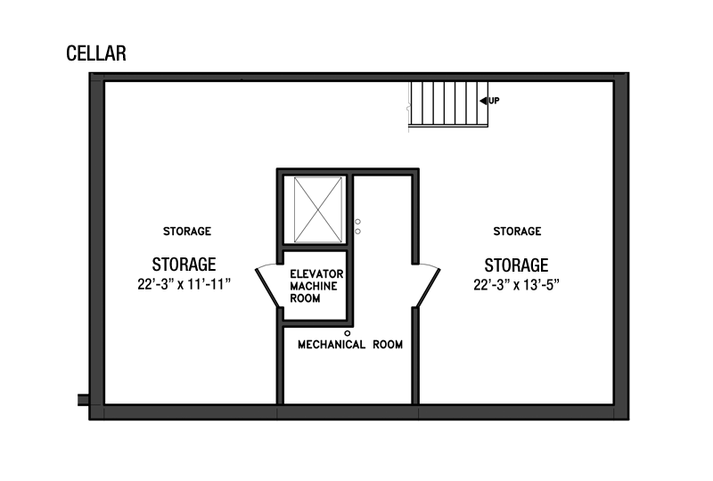 Cellar: Mechanicals and Storage Along with mechanical and elevator rooms the cellar features two large rooms offering abundant storage capacity. The generous 8 ½’ ceiling height provides the potential to create additional living space for playroom, gym, wine cellar, game or media rooms.