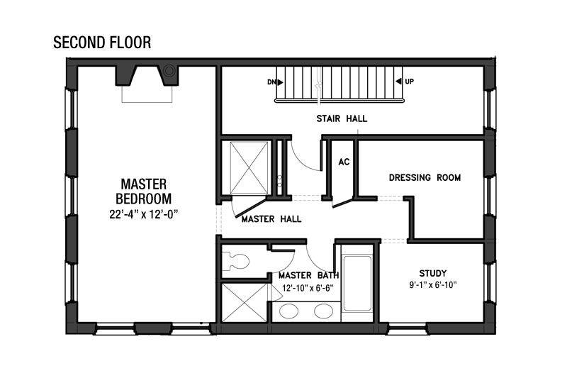 Second Floor: Master Bedroom Suite The second floor is devoted to a grand master suite comprised of an expansive bedroom with south and west exposures and a wood-burning fireplace. The en suite bathroom is designed with walls of honed Carrera marble field tile, the floor of polished Carrera marble with a black dot basket weave pattern, plus wood vanity with double Kohler sinks, white Carrera marble countertop, Kohler bathtub and a separate shower stall. All fixtures are polished nickel from Perrin and Rowe.