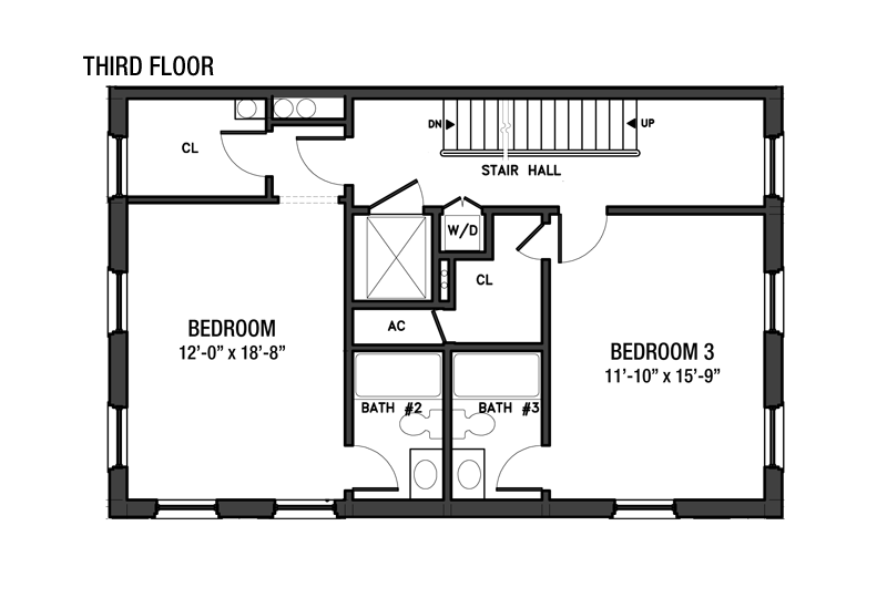 Third Floor: Second and Third Bedrooms The third floor contains the second and third bedrooms, one facing east to Hicks Street and the other west overlooking the garden. Each bedroom has a very generous walk-in closet and an en suite bathroom with ceramic tile floor, wood vanity, and white Carrera marble countertop. This floor also contains the washing machine and dryer located off the stair hall.