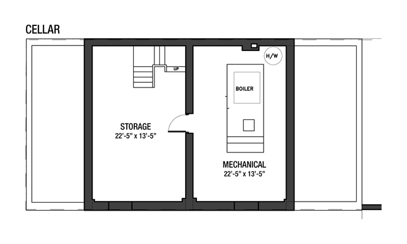 Cellar: The cellar is divided in half with one room containing the building mechanicals and the other providing ample space for storage.